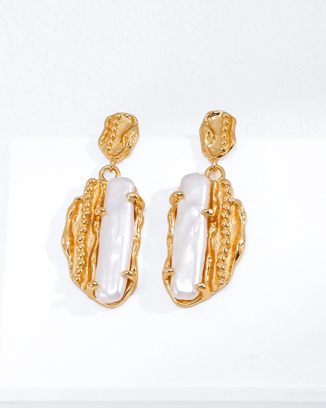 Sculptural and striking, Lava Light fuses raw texture with refined elegance. Elongated freshwater pearls are framed in molten gold-toned forms, a bold contrast of organic softness and structured radiance.