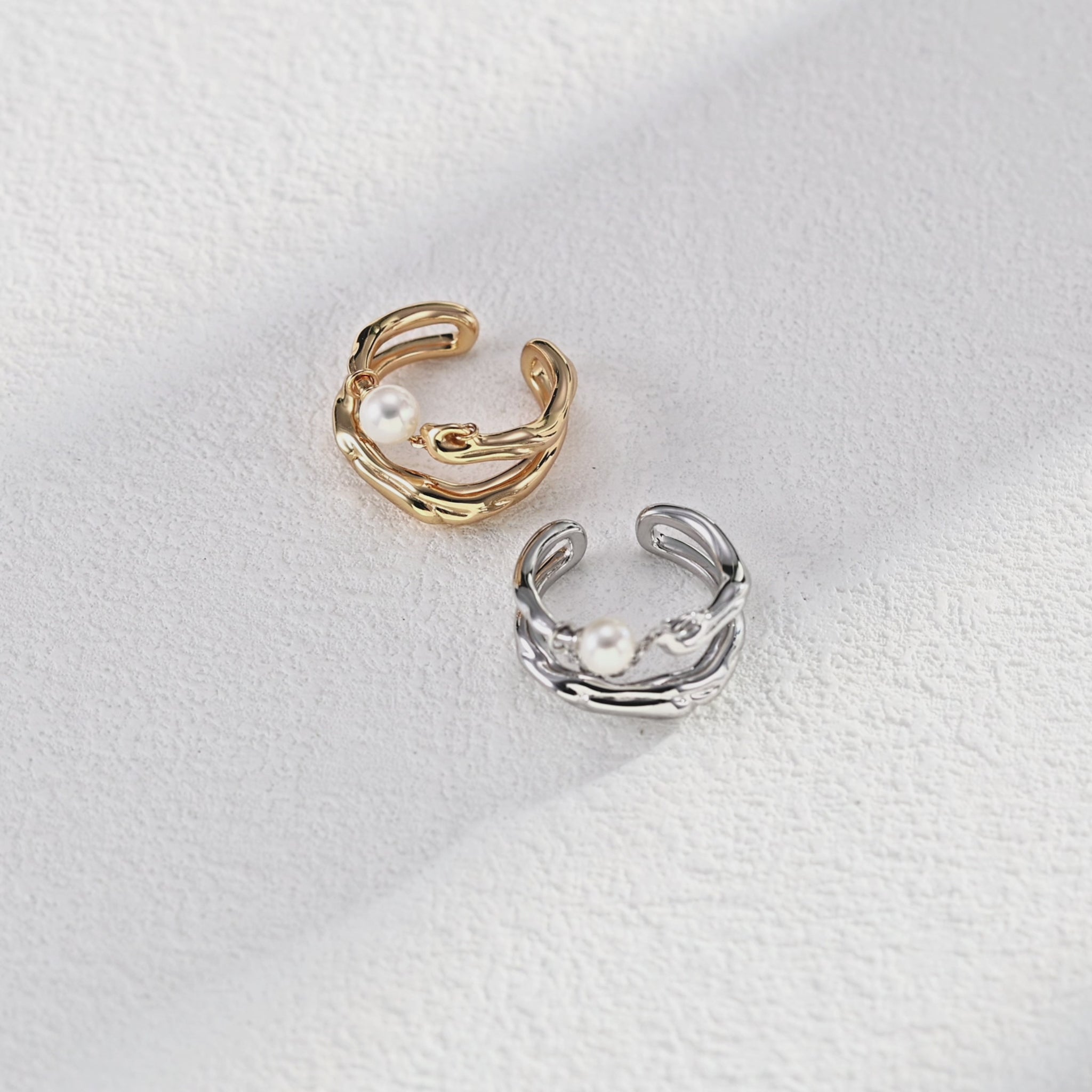 Channel your inner goddess with our sculptural Twilight Melody ring. Featuring fluid curves and a dancing freshwater pearl suspended on a delicate chain, this statement piece embodies feminine power and grace. Mindfully crafted in 925 sterling silver or 18k gold-plated finish, it's designed to make every gesture magnetic and meaningful.